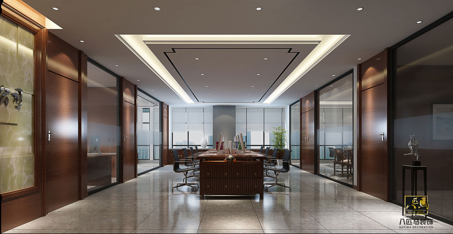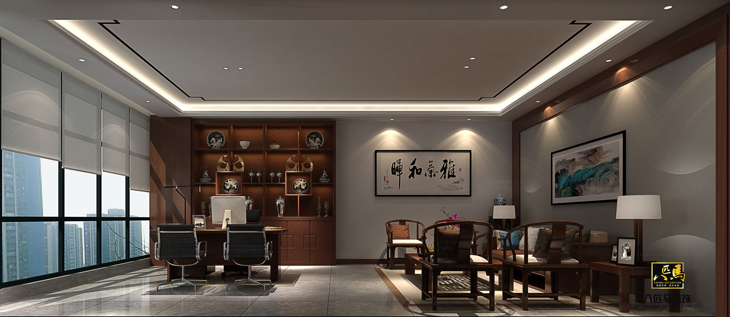 設(shè)計風格:該司的辦公室設(shè)計風格為新中式風格,運用大理石、木飾面、金屬線條及實木地板等中式元素加上現(xiàn)代元素的設(shè)計理念,時尚不失典雅,開放辦公區(qū)采用裸頂方式,提高空間層高,讓空間更通透更舒適。
