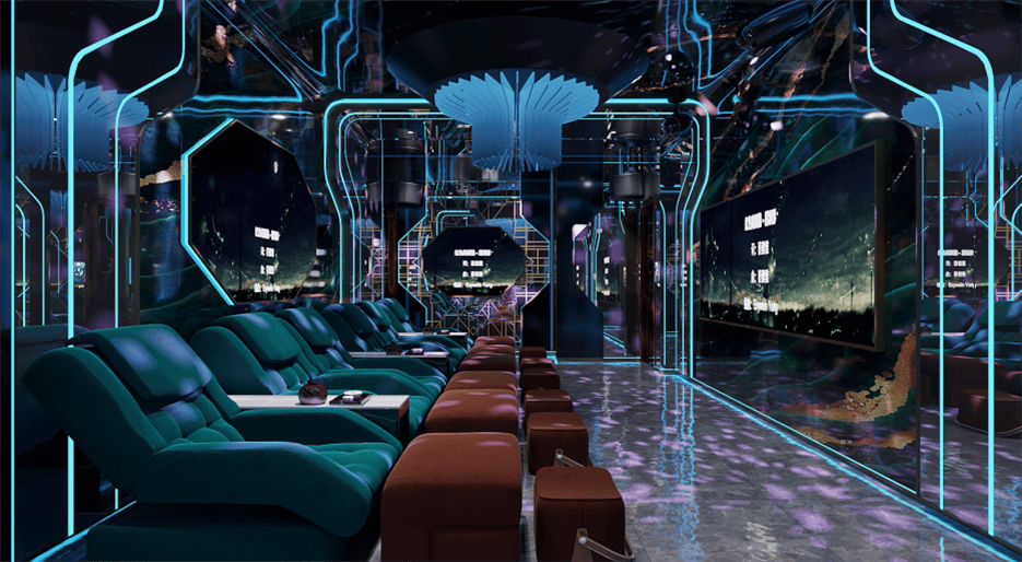 本設(shè)計(jì)為一家集 KTV、足浴、按摩于一體的休閑場(chǎng)所,整體風(fēng)格奢華且富有科技感與時(shí)尚氛圍。