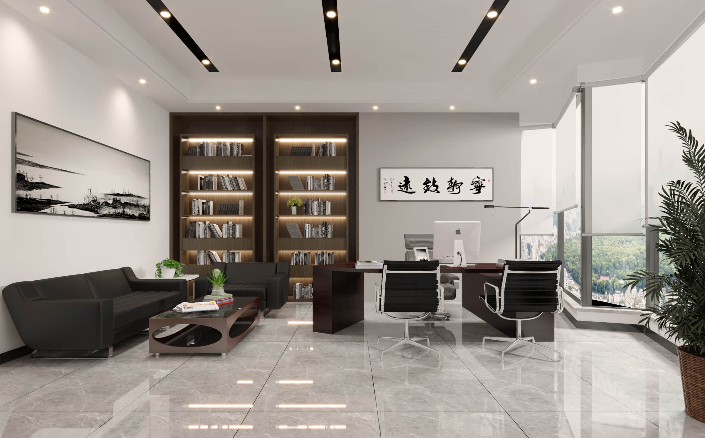 前臺區(qū)域,大理石墻面搭配木質元素,彰顯大氣與質感,簡潔的接待臺與柔和燈光,營造專業(yè)氛圍。辦公區(qū)以白色為主調,寬敞明亮,大面積窗戶引入自然光線,視野開闊。經(jīng)理辦公室內,深色家具與書架增添穩(wěn)重感,墻上字畫點綴文化氣息,綠植生機盎然,緩解視覺疲勞。各處燈光設計考究,既保證照明又烘托氛圍,旨在打造一個舒適、高效且富有格調的辦公環(huán)境,展現(xiàn)公司的專業(yè)形象與文化內涵。