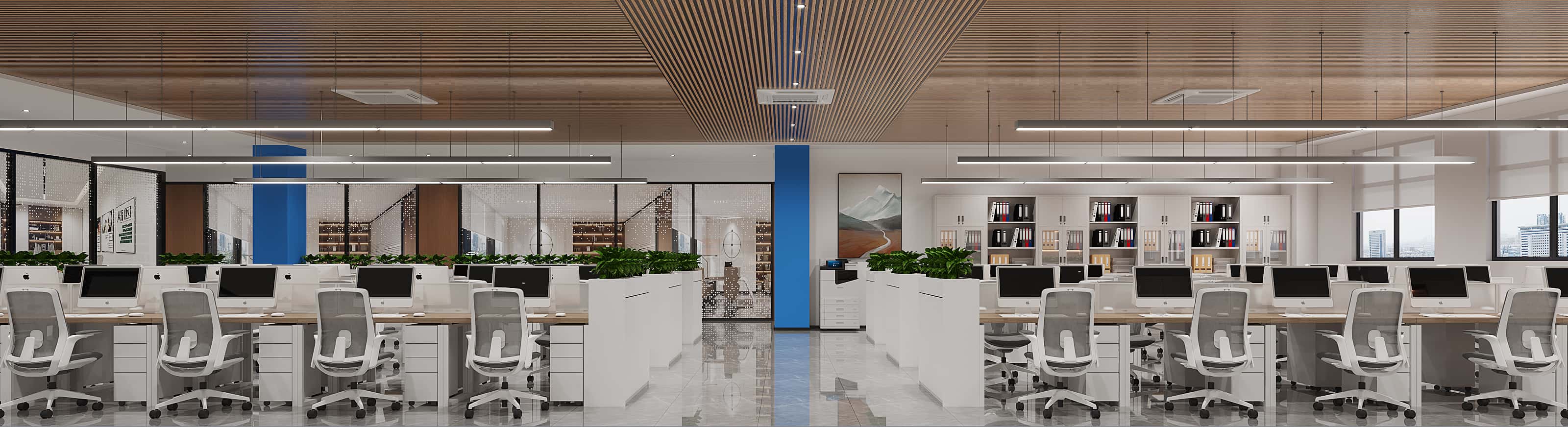 前臺區(qū)域,白色大理石搭配木質(zhì)元素,簡潔大氣,彰顯企業(yè)形象。辦公區(qū)以白色為主色調(diào),搭配綠植和藍(lán)色點(diǎn)綴,營造清新明亮氛圍,提升工作舒適度與效率。會議室配備大屏幕,滿足現(xiàn)代辦公需求,兩側(cè)書架增添文化氣息。領(lǐng)導(dǎo)辦公室則融入中式元素,如山水畫、木質(zhì)家具等,展現(xiàn)沉穩(wěn)與雅致,同時配備舒適辦公家具,打造愜意辦公空間。整體設(shè)計既注重功能性,又體現(xiàn)了企業(yè)的文化與品味。