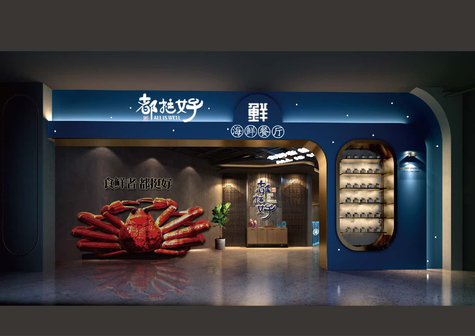 外觀上,藍(lán)色主調(diào)搭配醒目的大螃蟹圖案,吸引眼球。入口處的海鮮展示缸,直觀展現(xiàn)食材新鮮度。