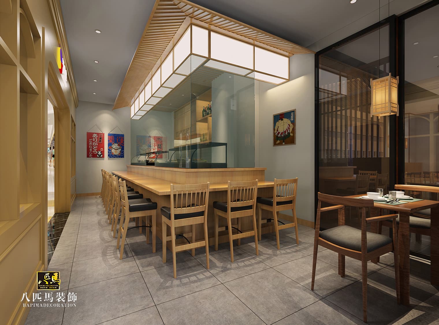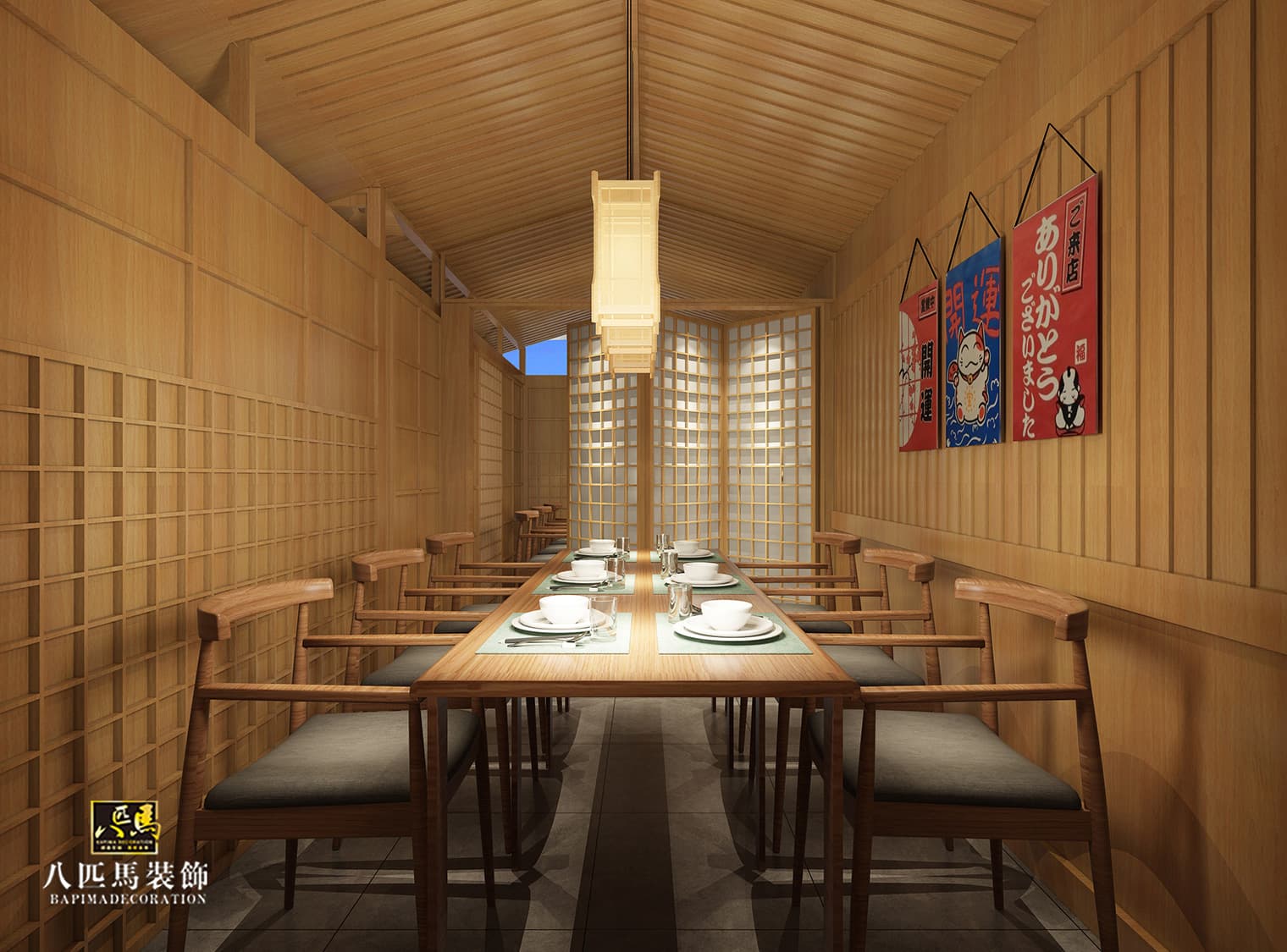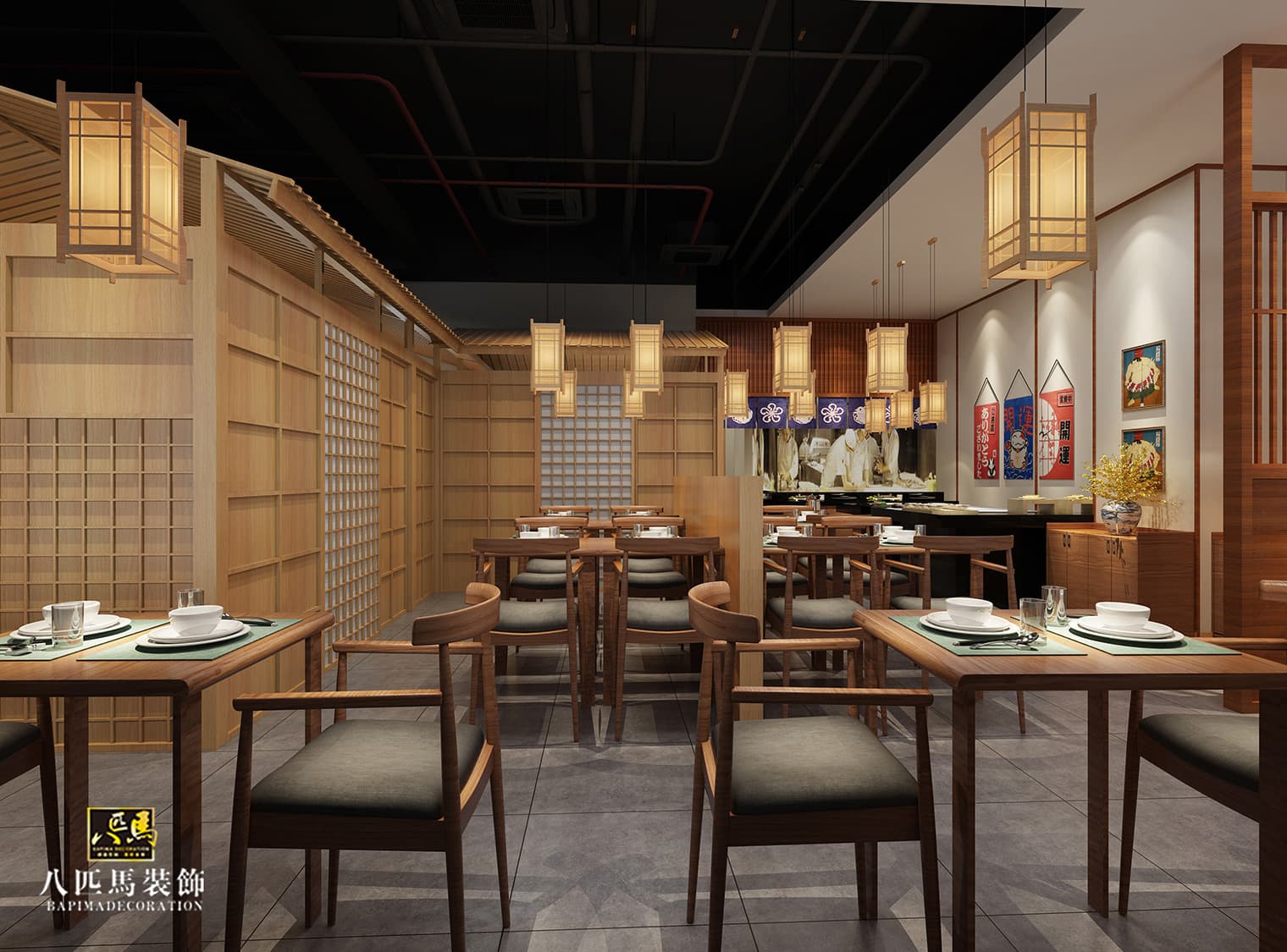 設(shè)計(jì)風(fēng)格:呈現(xiàn)的就餐氛圍清新自然、簡潔淡雅。日式料理店裝修采用清晰的線條設(shè)計(jì),木質(zhì)、石材的天然裝修材質(zhì)被運(yùn)用于區(qū)域裝修設(shè)計(jì)中,