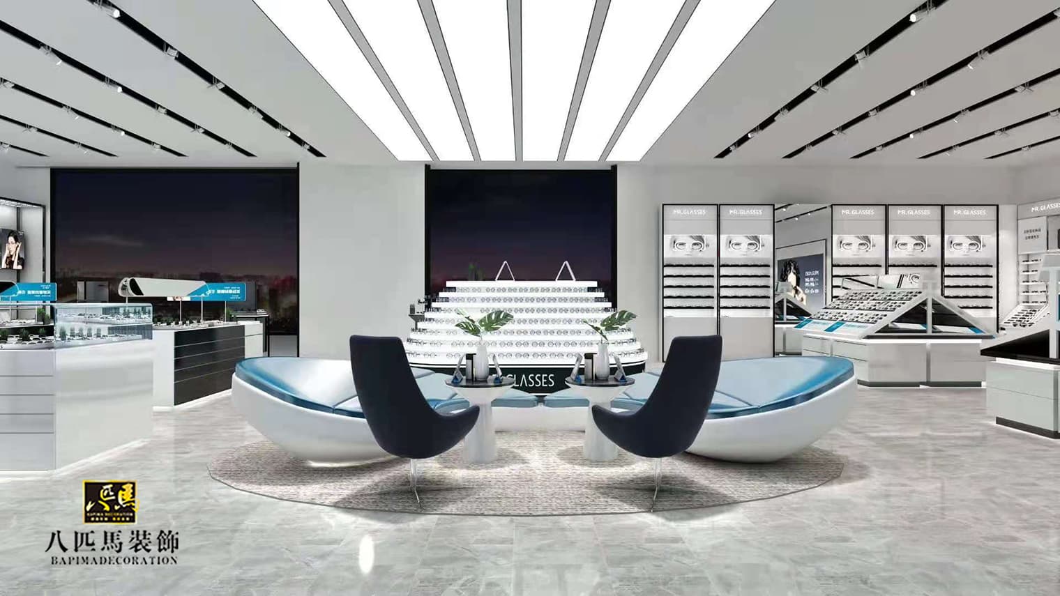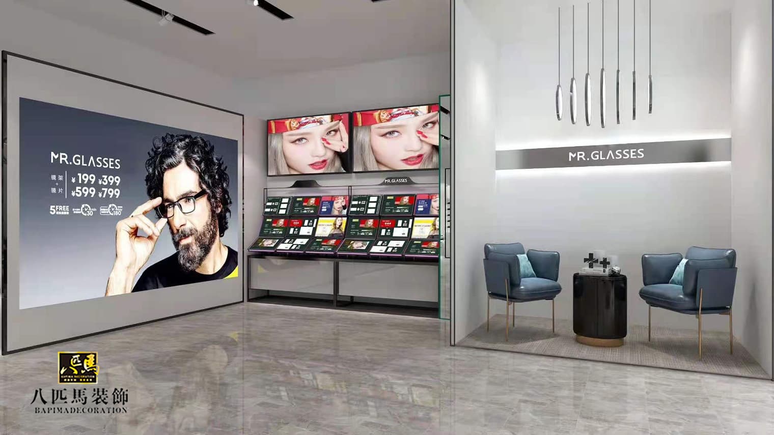 設(shè)計(jì)風(fēng)格:打造顧客休閑購(gòu)買潮流時(shí)尚的科技風(fēng)眼鏡,給進(jìn)店客戶以清晰、強(qiáng)烈的感覺。簡(jiǎn)潔、明快吸引客戶注意力